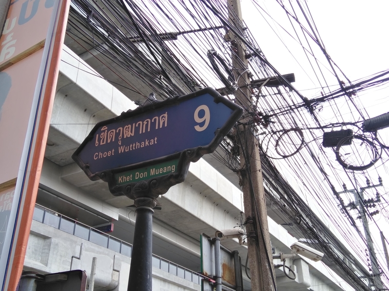 ひたすら真っすぐ進むと左手に建設中のBTSドンムアンステーションが見えます。宿までもうすぐです。